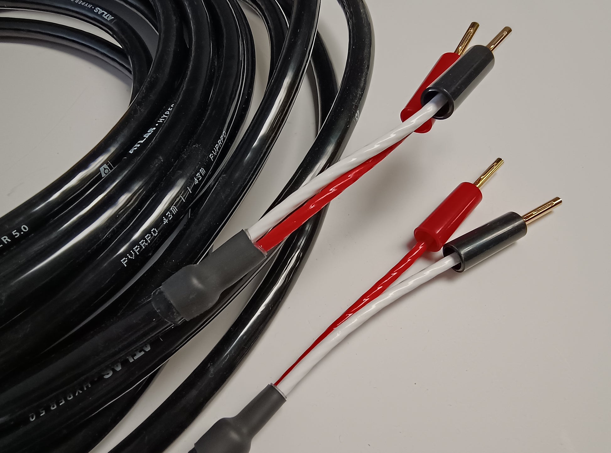 This cable has been terminated here at Deco with soldered on 4mm gold plated banana plugs, perfect for ensuring a very long life despite the heavy weight of the cable.