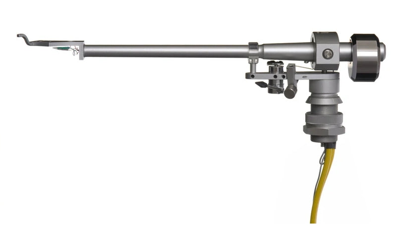 The Arm One/II is an exquisitely made arm which use a single piece of machined aluminium for the one piece arm tube/headshell, which is internally tapered to keep the arm both stiff and light. Another solid block of aluminium is machined to make the bearing housing which contains ‘captured unipivot’ bearings.