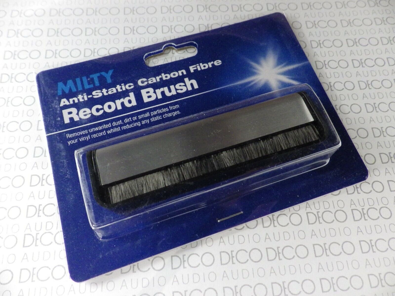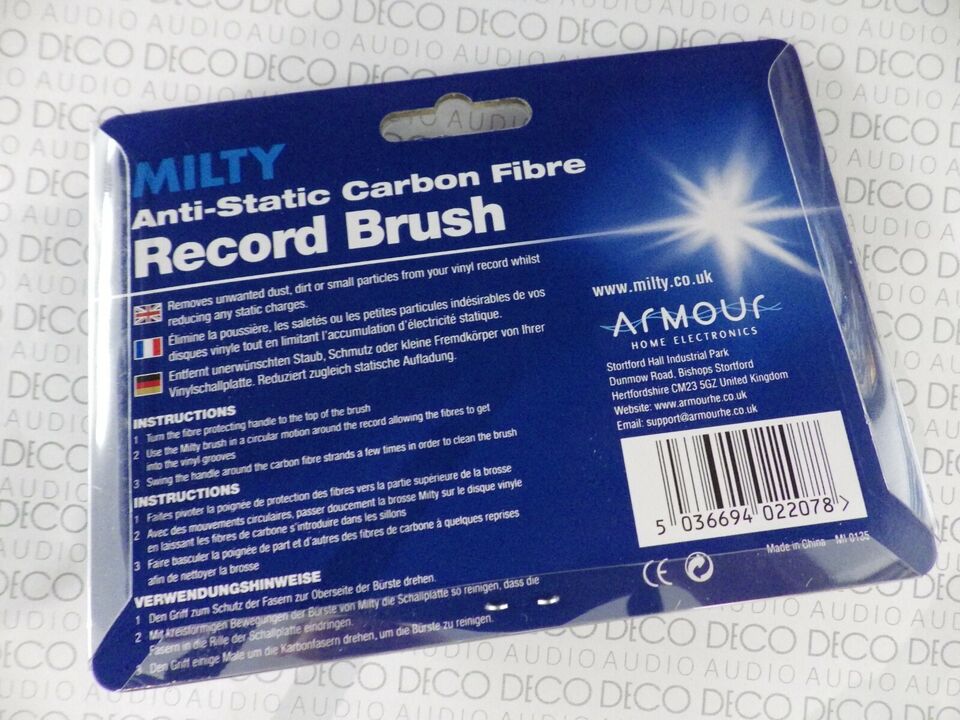 This is a classic carbon fibre record brush that makes safely removing surface dust from your LPs quick and easy. It features a protective flip over cover which is also used to knock the dust of the fibres without touching them. The bristles are conductive to help dissipate static as you clean. Simply spin the record on turntable, hold the brush on the record for a couple of rotations and then draw the brush to the outside, flick the guard over to knock the dust off, repeat, and you have a clean LP ready to play - I wouldn't play a record without one!