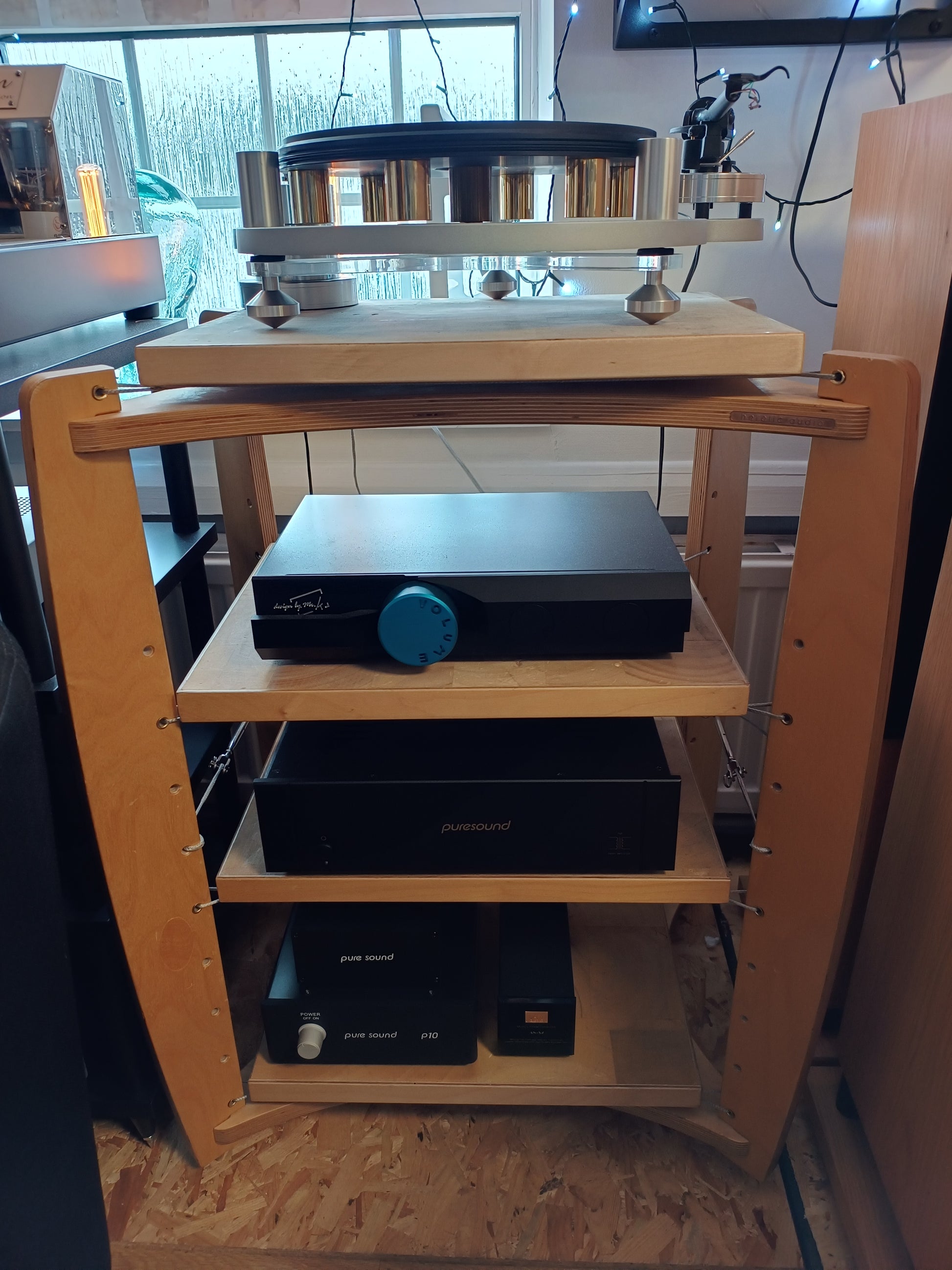 We have some 3 and 4 tier Ex demonstration/Display Heretic Audio racks available. Their condition varies but do expect some marks.