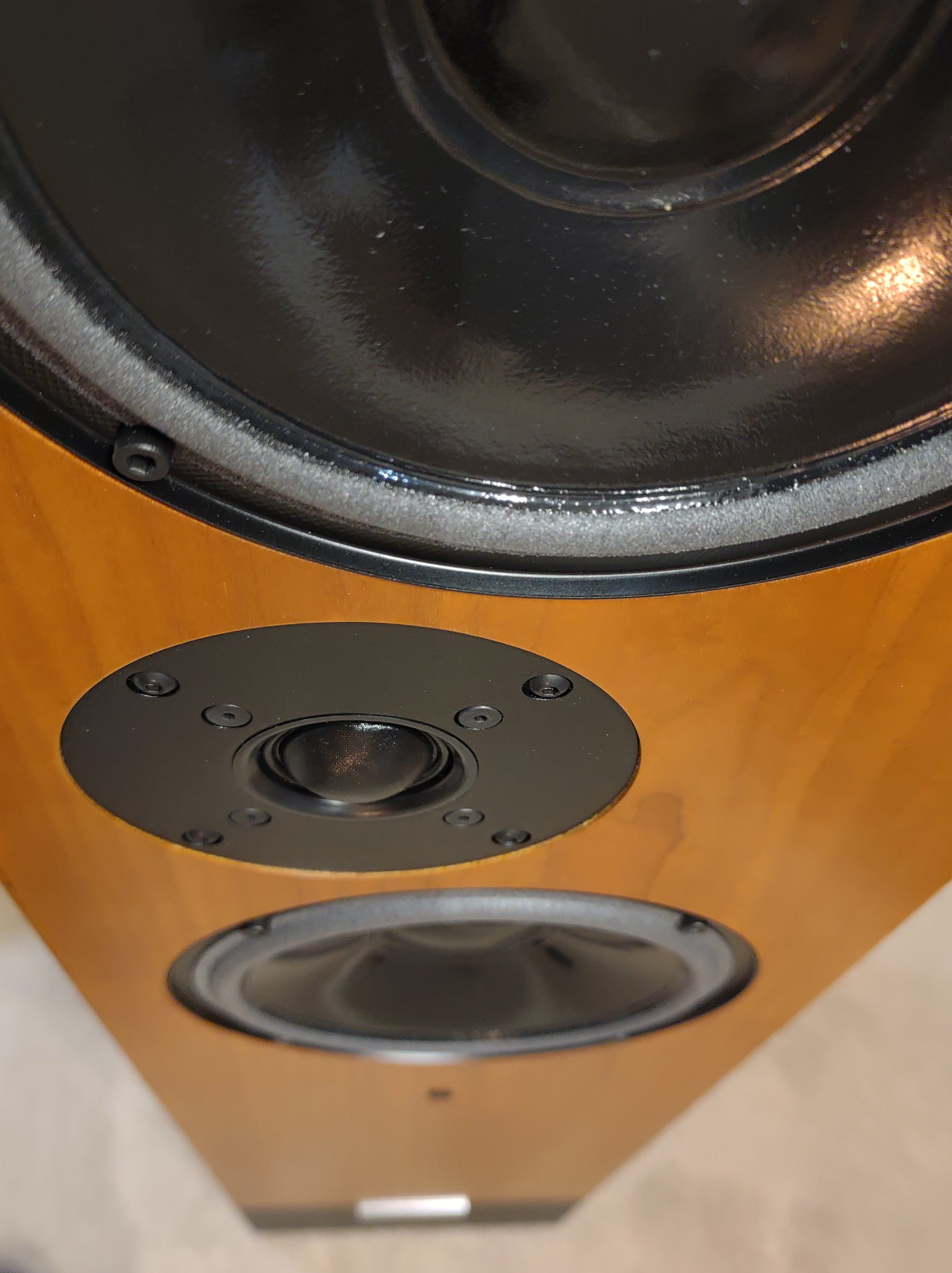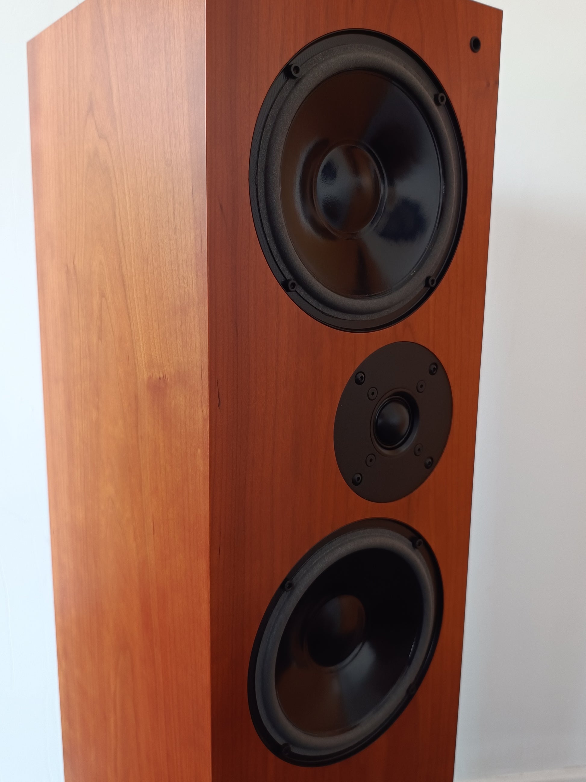 Over the entry level model this brings various refinements including a larger and more advanced tweeter, a hardwood composite enclosure with internal balancing real wood veneer made from Maple, recessed bass/mid drivers, double bracing and upgraded crossover components.