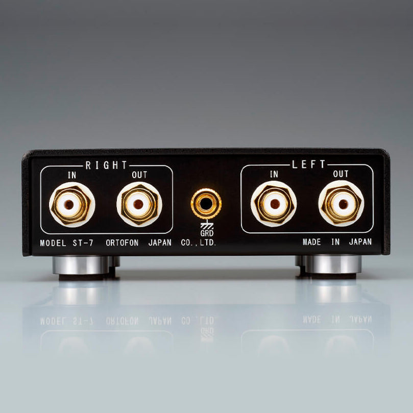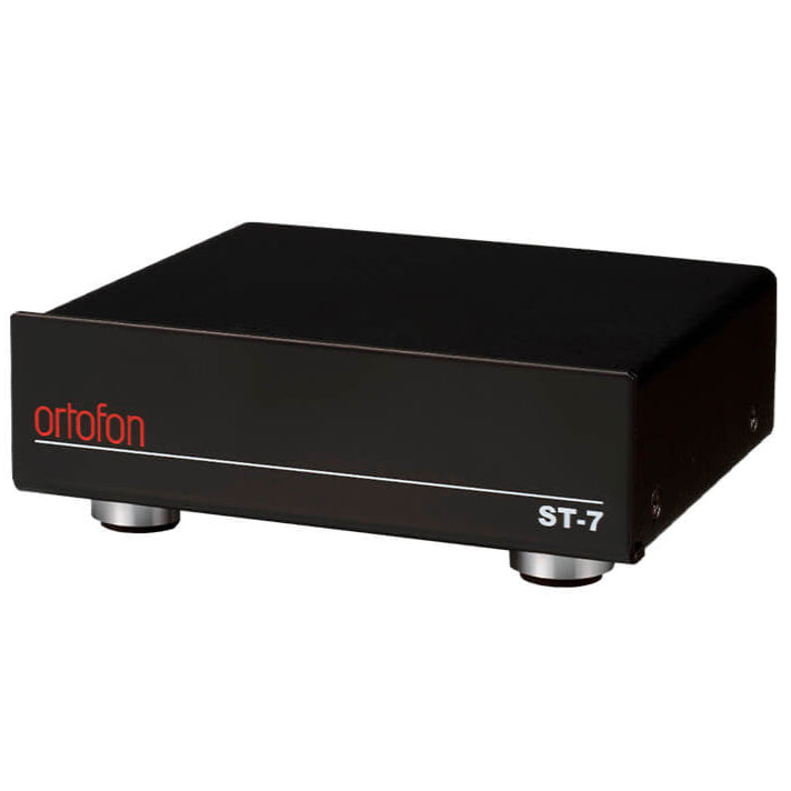 The ST-7 marked the return of Ortofon producing more affordable step up devices. Housed in a small but beautifully made metal enclosure, the ST-7 features sandwich winding in the transformer which is claimed to significantly improve the high frequency response and provide a very clear and open sound over the whole frequency range.
