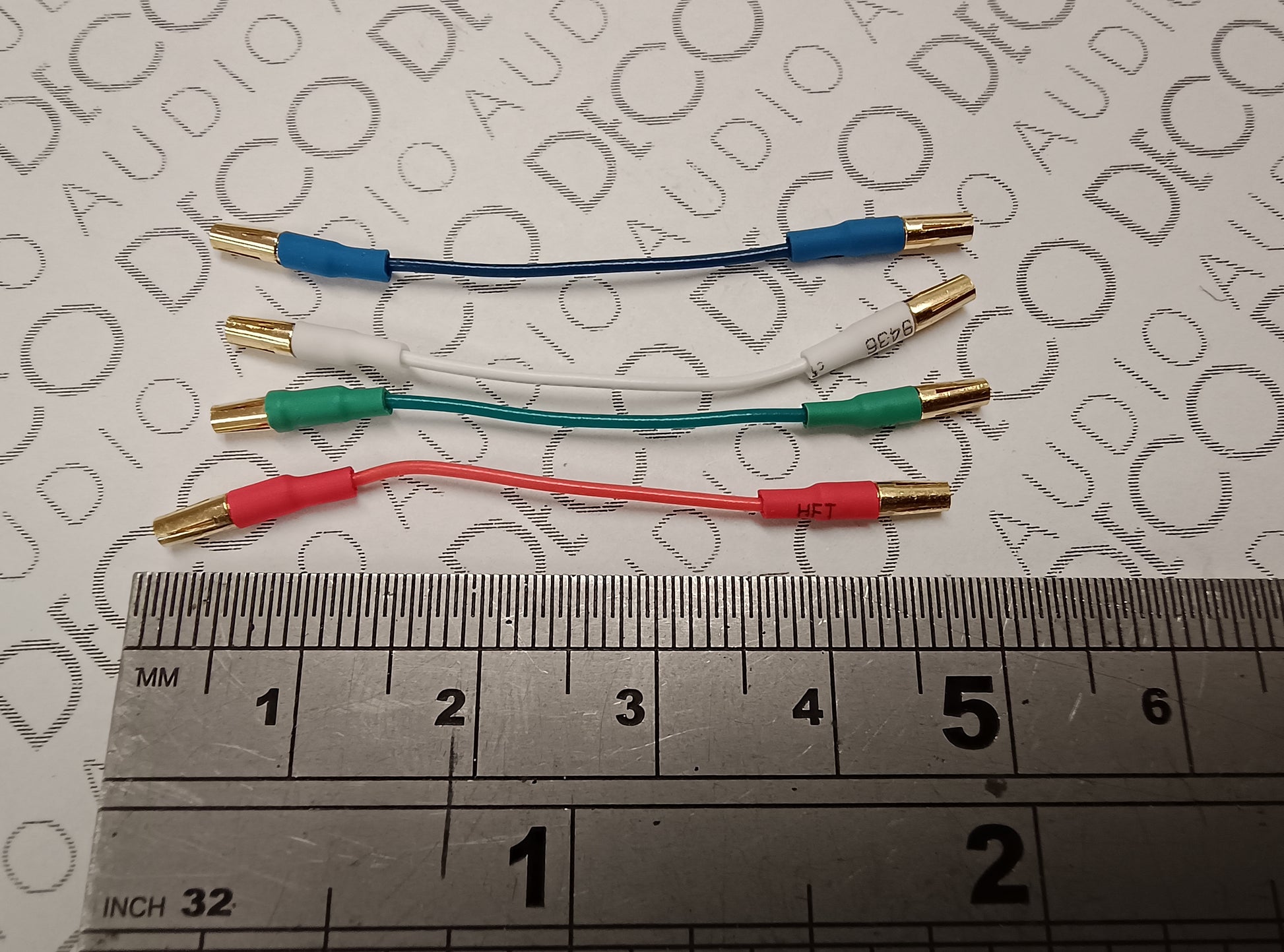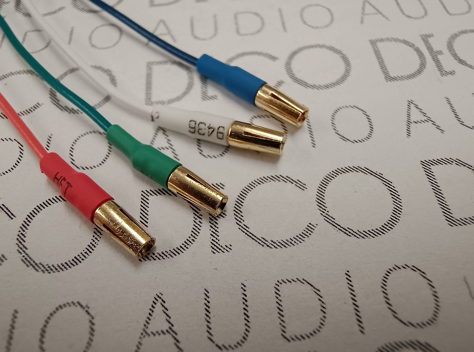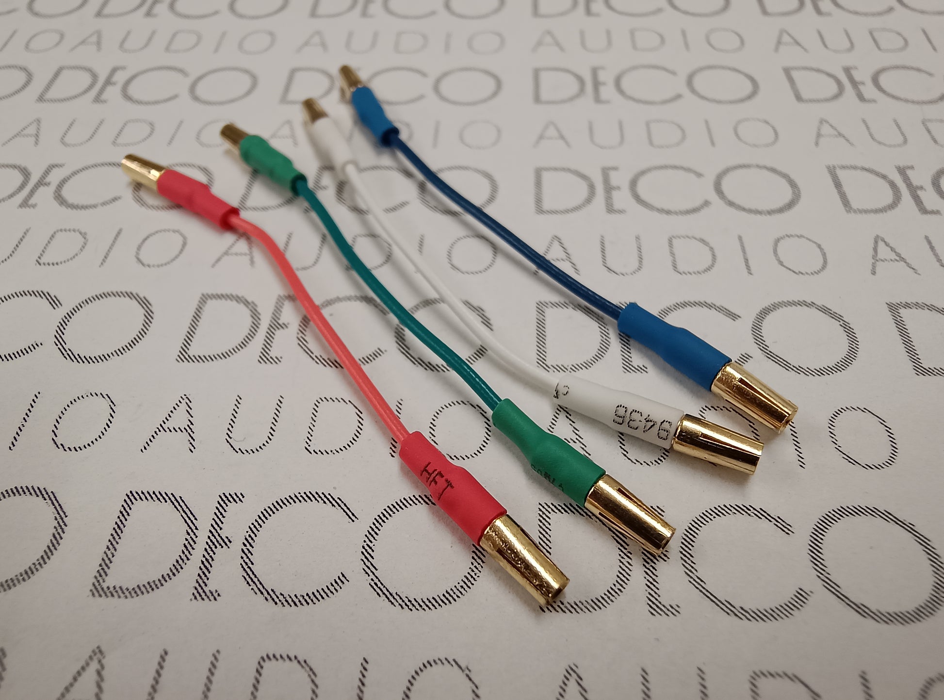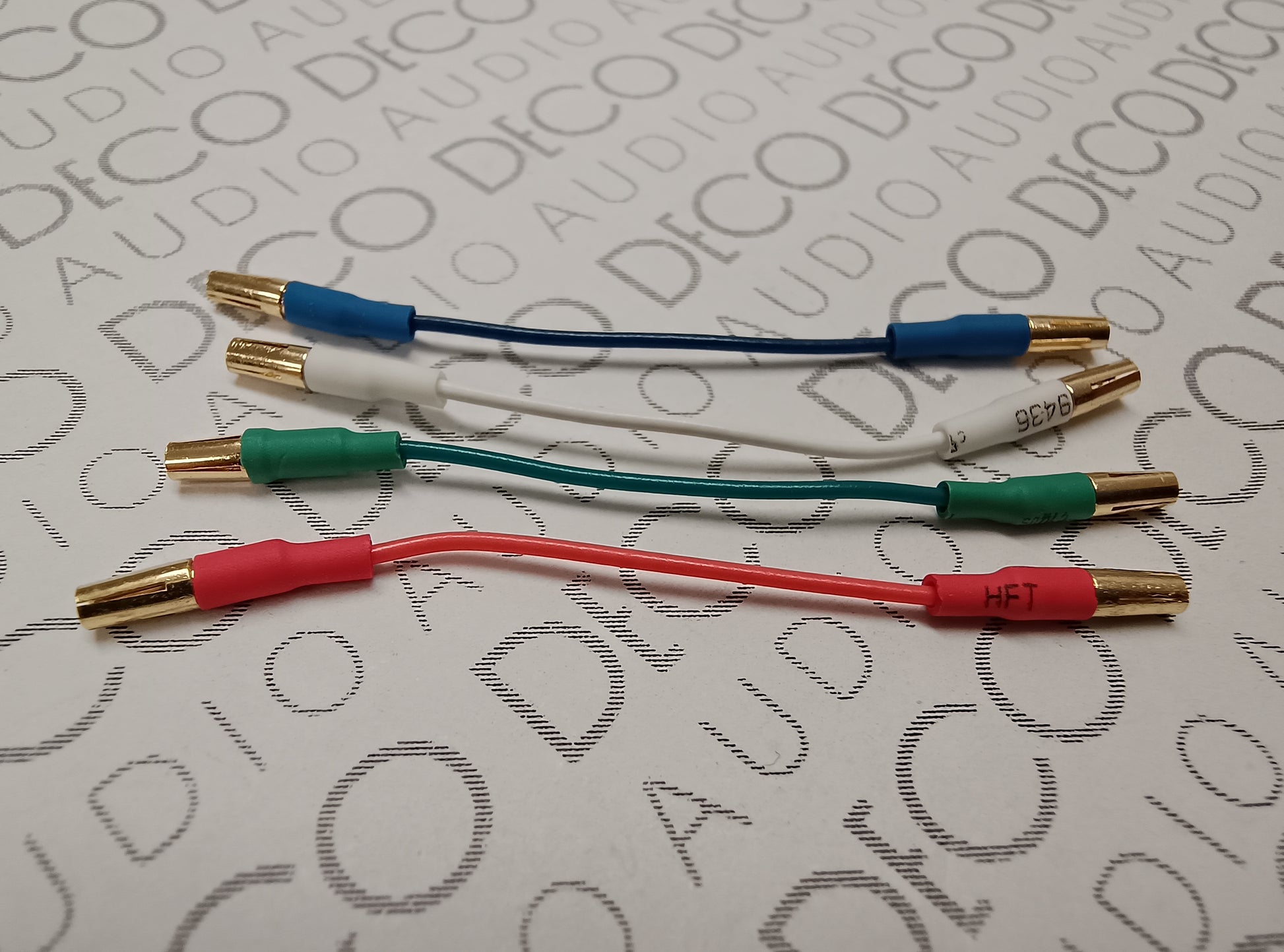 The wires are colour coded and soldered to gold plated beryllium copper cartridge tags, which have the benefit of not tarnishing whilst also offering some springing force to fit most sizes of cartridge tags.