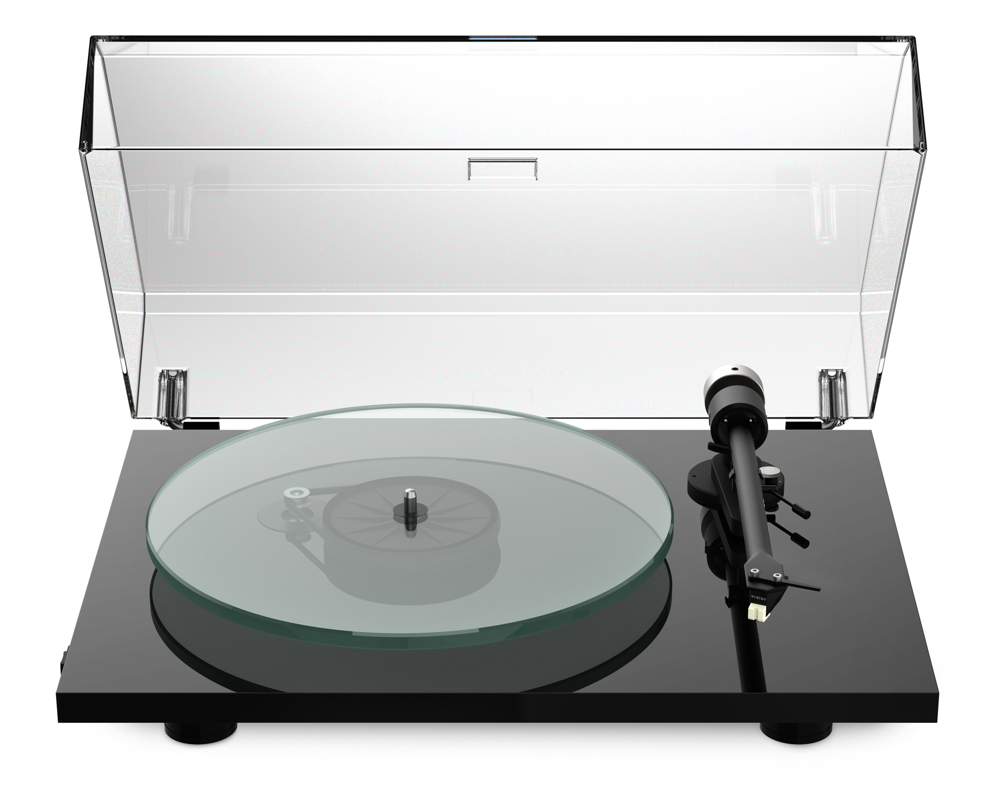 All models feature a felt topped glass platter, pre-fitted Sumino Rainier MM cartridge (with the counterweight set at the factory), electronic speed change and hinged/lift-off clear lid.
