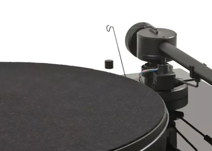 The Pro-Ject Anti-Skate Weight Support Hoop/Anti-Skate Arm is the metal rod, which is screwed into the base of most Pro-Ject tonearms. It comes out of the arm base at an angle, and is designed to allow the anti-skate weight (which is hooked onto the arm) to hang freely.