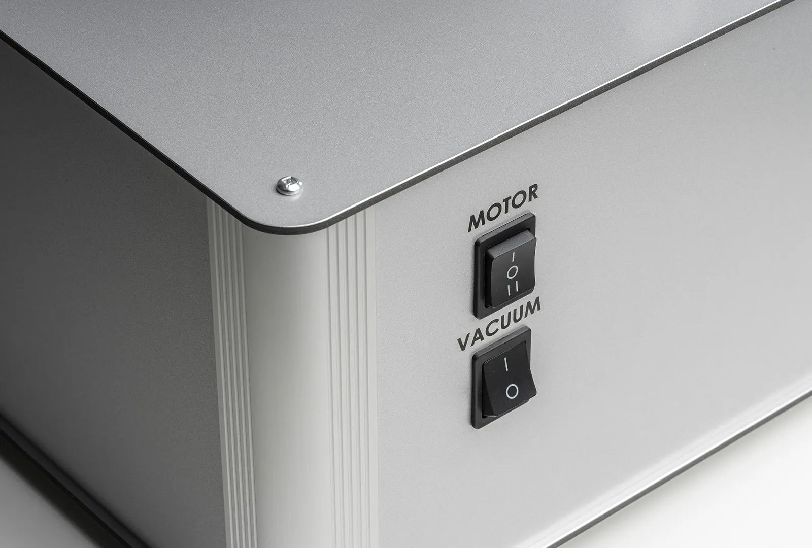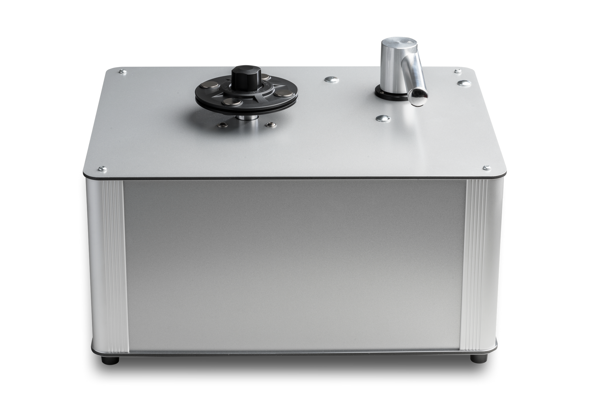 Boasting a striking 5mm thick composite aluminium surface that’s not only visually appealing but is able to withstand excessive fluid spills without compromising the chassis, the VC-S3 houses a powerful vacuum motor to clean records, residue free, in as little as one or two rotations. The very best results are achieved with one rotation forward, followed by one backwards, and at a rotational speed of 30rpm this is a very speedy process. A magnetic clamp protects the record label from cleaning fluid and avoids damage to the label. The robust metal arm is easy to use, mechanically stable and focuses all suction power directly onto the record surface.
