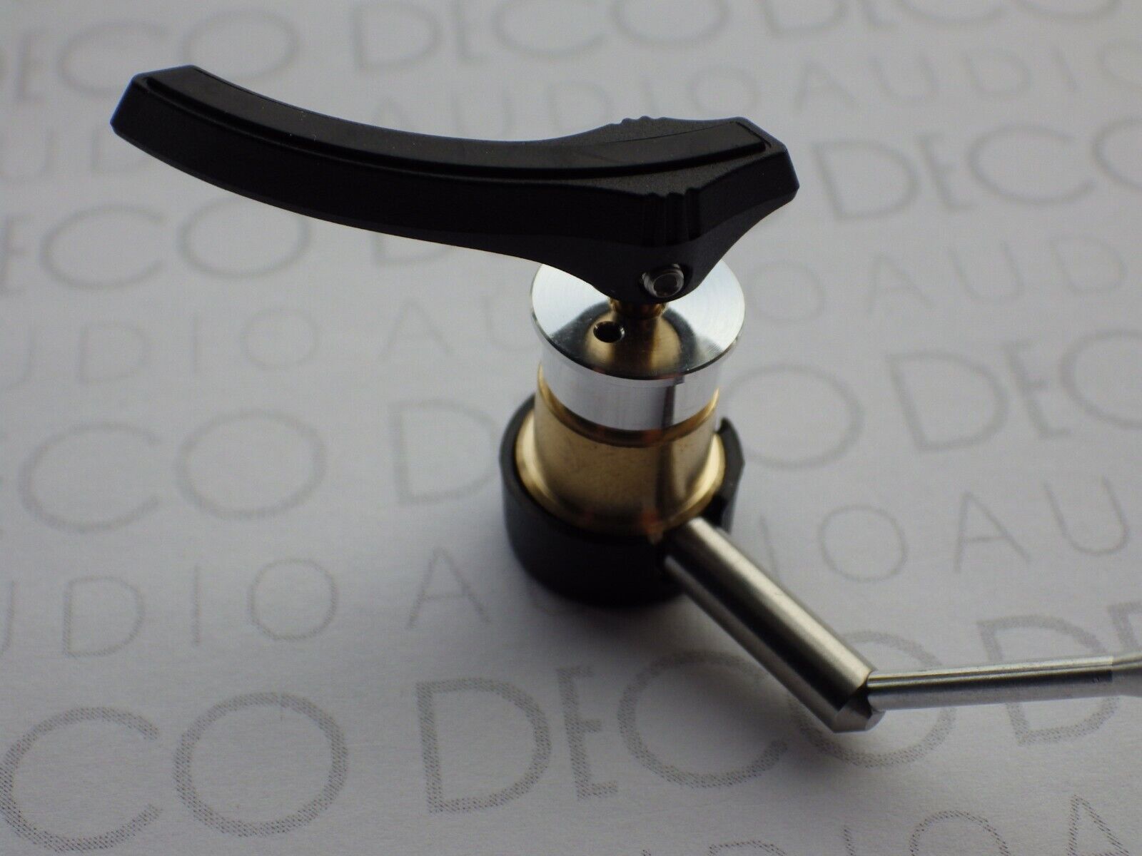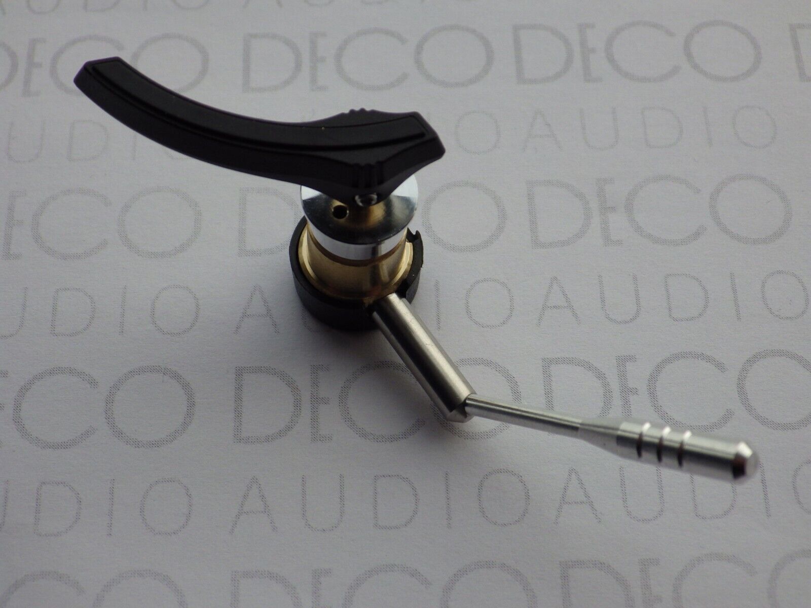 Fitting instructions: It is very easy to fit, simply loosen the small allen bolt to remove the the black banana shaped platform the arm rests upon in the 'up' position and put it to one side (please note that this is the wrong way around when you get it - to make it smaller and safer to transport), unscrew the upper silver section which is what clamps the whole assembly to the tonearm (being a little careful not to loose the spring inside), fit the lift lower assembly into your tonearm from underneath (arm will need to be removed from turntable to do this), screw the the upper silver section back into place firmly (using circlip pliers or similar to tighten) and then refit the banana shaped platform at the desired height, and you're now ready to go!