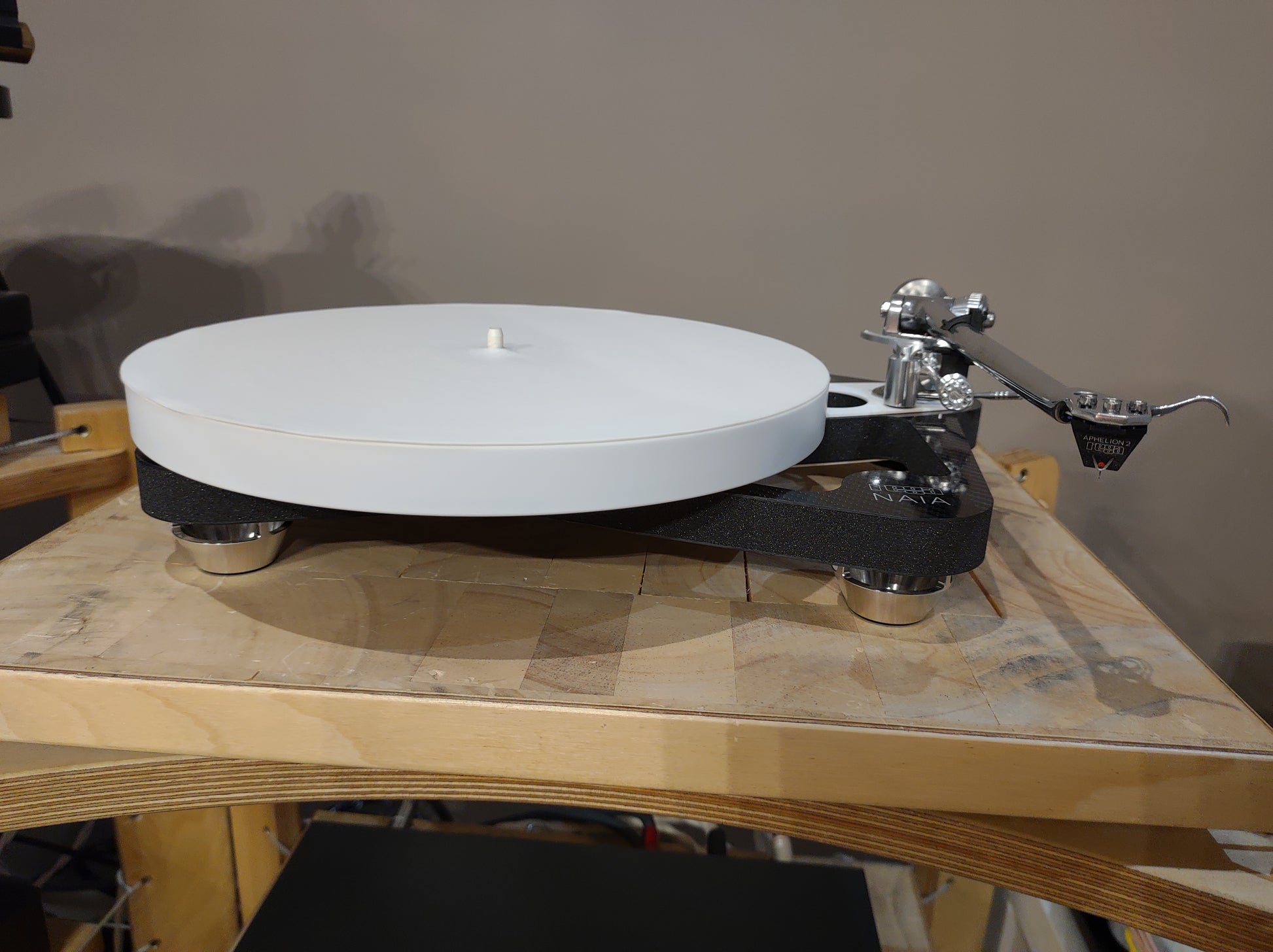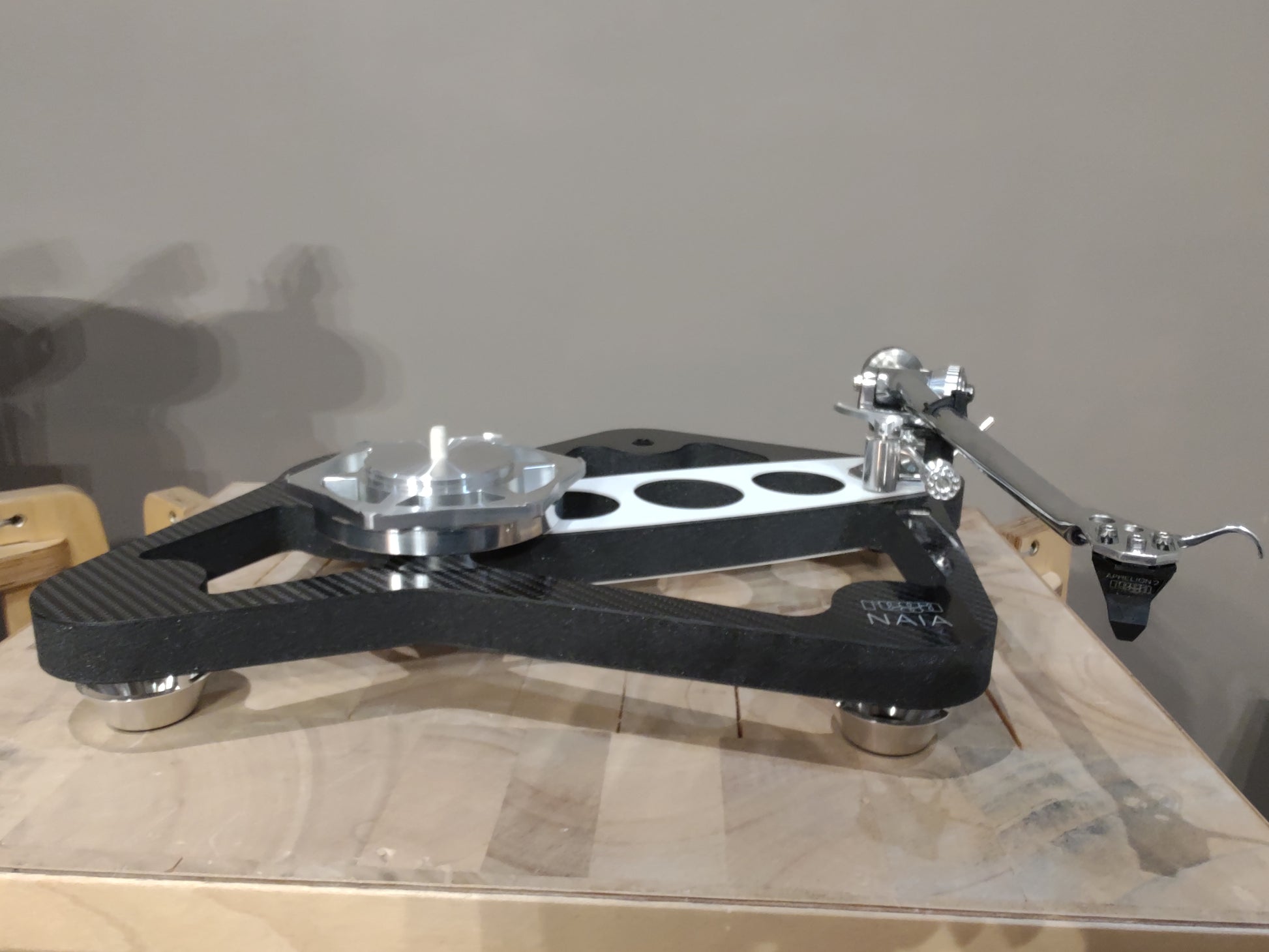 The tonearm is the RB Titanium, a hand polished delight with titanium bearing housing, near frictionless movement and tungsten counterweight and arm stub. This arm was also used on the Naiad turntable.