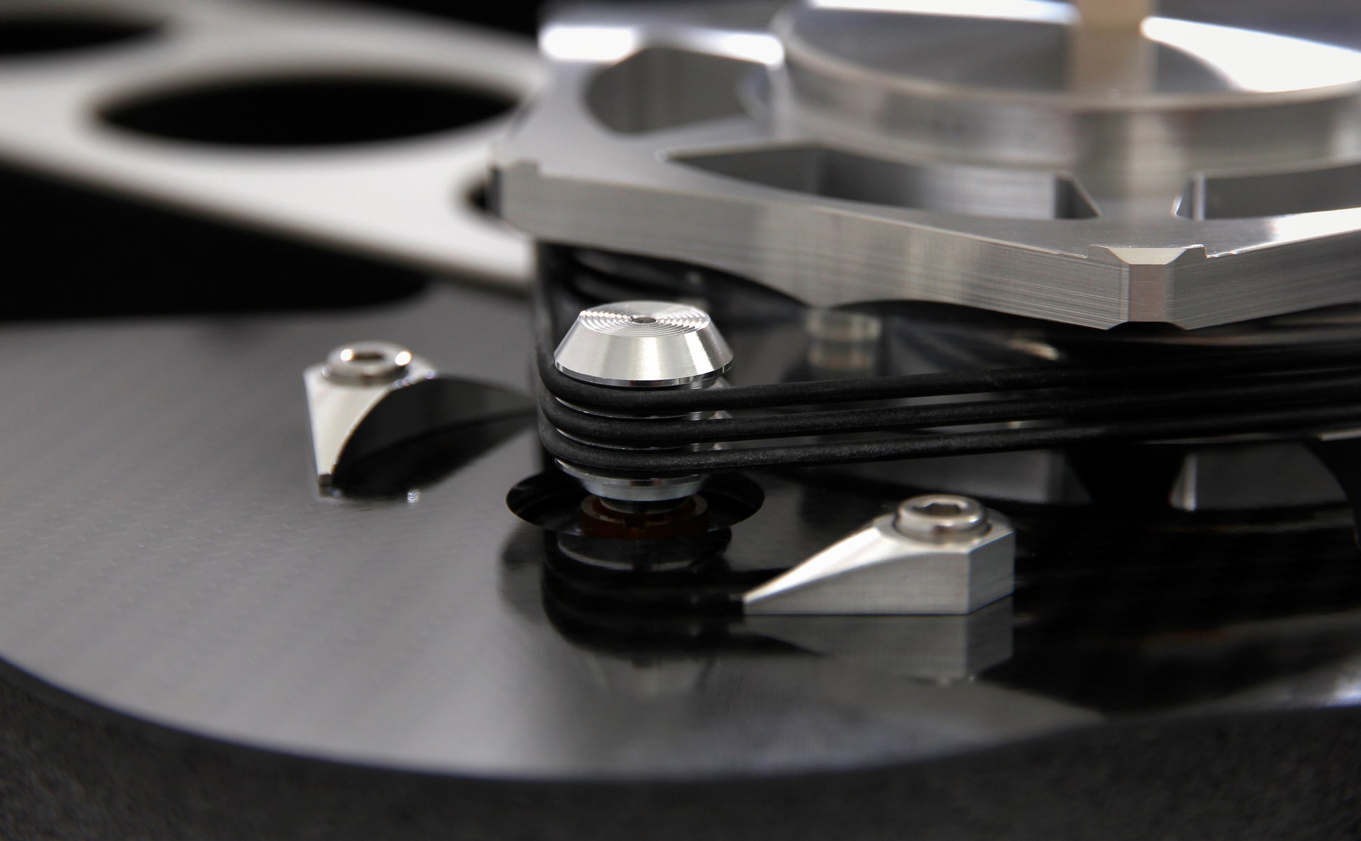 The AC motor is powered from an external supply called the Reference and it drives the sub platter by three drive belts, ensuring high torque and low slip for improved speed stability.