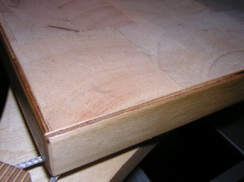 The balsa blocks are bonded to a stiff but thin plywood backing and there's a cosmetic plywood frame around the outside. The shelves are remarkably strong considering their design and can be used under heavy equipment without issue (items with spiked feet will sink into the balsa but unless exceptionally thin, long and sharp this will not be a problem).